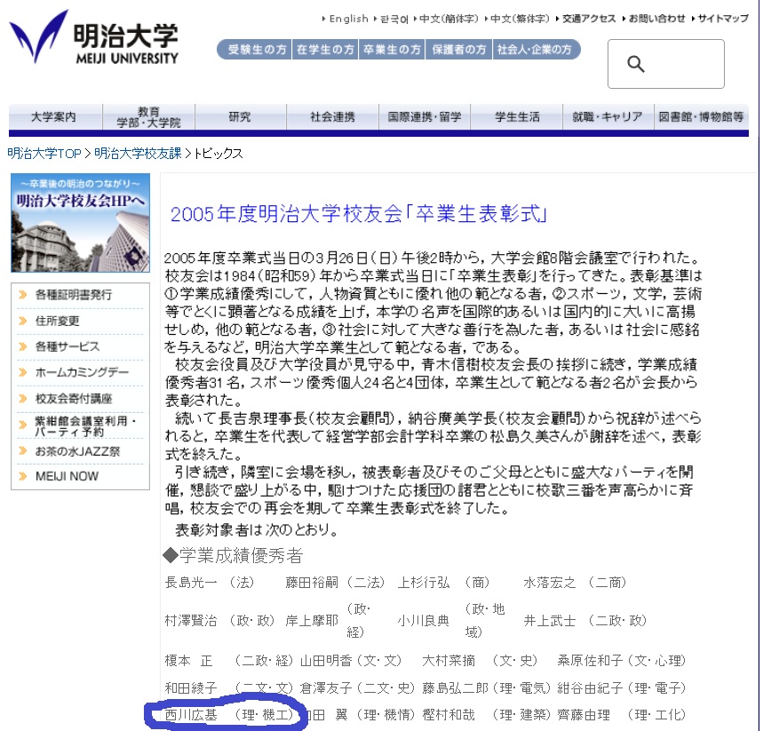 明治大学 理工学部 機械工学科の出身、